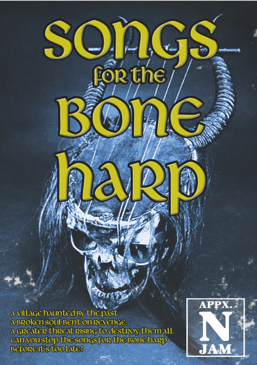 Over on itch.io, before the bad times began, some good people proposed having an Appendix N Jam. For those who don’t know, Appendix N was the part of the first edition AD&D Dungeon Master’s Guide that listed inspirational materials. It was basically a list of sword & sorcery style fiction. The way it worked was participants got assigned a random “pulpy” sounded title and had to write an adventure to suit. My title was “Songs for the Bone Harp” and this is the grim mystery I made for it: